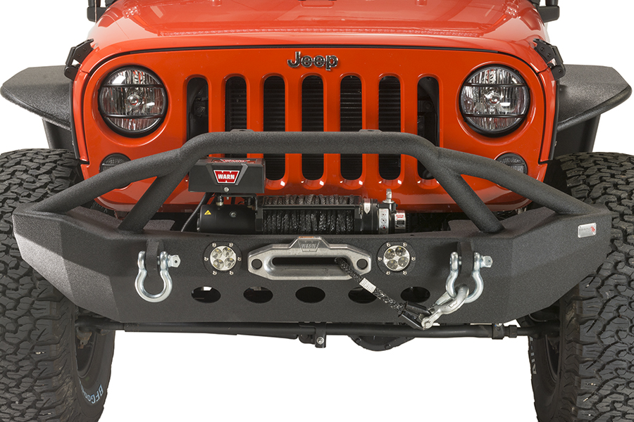Jeep JK Front Winch Bumper W/LEDs Full Width 07-18 Wranger JK Black Texured Powercoated Fishbone Offroad