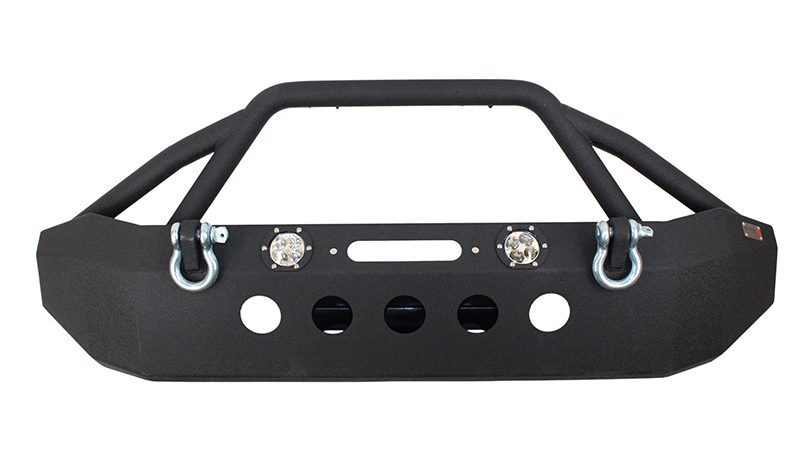 Protect the entire front of your JK with this Fishbone Offroad Full Width bumper. Fishbone Offroad uses a recessed winch plate to keep air moving across your grill. This bumper includes 2 LED lights that are installed in the bumper. Fishbone Offroad ships this bumper with all necessary hardware to install it and includes 2 d-rings so that you're ready for the trail. Bumper will not accept a Warn ZEON winch. Bumper weighs 85 lbs.