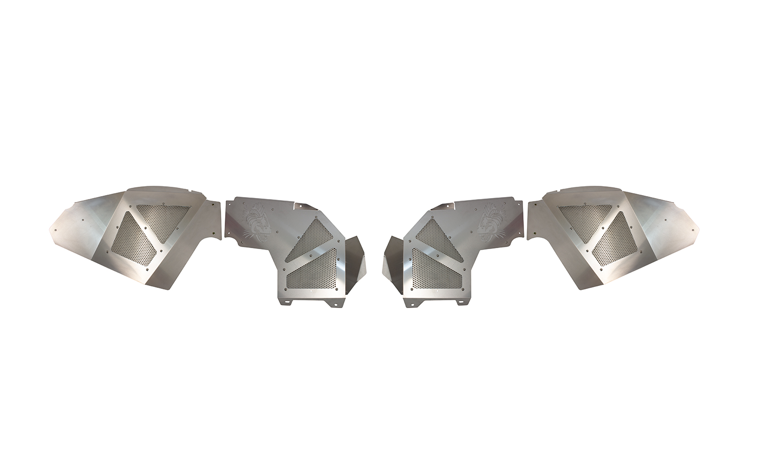 If you have Tube Fenders, you need a set of Aluminum Inner Fenders to finish the look. Once installed these offer protection from rocks and debris entering the engine compartment. These are stamped from Aluminum with the Fishbone Offroad Logo.