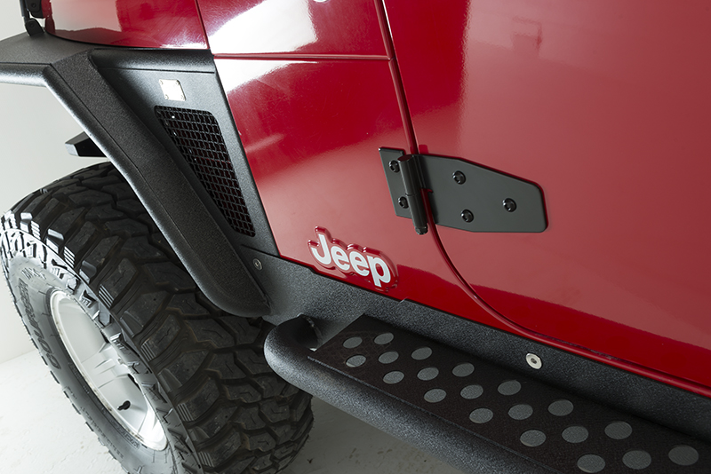 Our door hinge for your TJ comes in a high gloss black powder coated finish. Each set is inspected for fit, finish, and function. It comes complete with all hardware needed for installation. All Kentrol products come with a limited lifetime warranty.