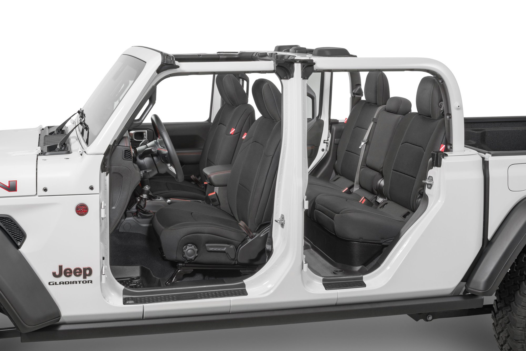 Jeep Wrangler Front and Rear Neoprene Seat Covers forВ 20-Up Jeep Gladiator JT w/Leather Interior Black Diver Down. It's like having custom made wet suits for your Gladiator JT seats! These seat covers fit vehicles with factory leather interior. Protect your valuable upholstery from water, dirt, grime and normal wear and tear while adding a customized look.