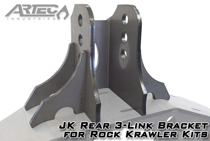 JK Rear 3-Link Bracket. When used with our JK Rear Truss, this heavy duty bracket is made to work Inch a Rear 3-Link Long Arm System. This item also provides you with a low profile, high-clearance alternative not currently obtainable with Rock Krawler's truss. Integrates perfectly with the Artec Rear JK Tracbar Bracket. This bracket only works if you purchase our JK Rear Truss or 1 Ton Swap Kit. This Kit requires general welding and fabrication skills including welding to the cast center section.
