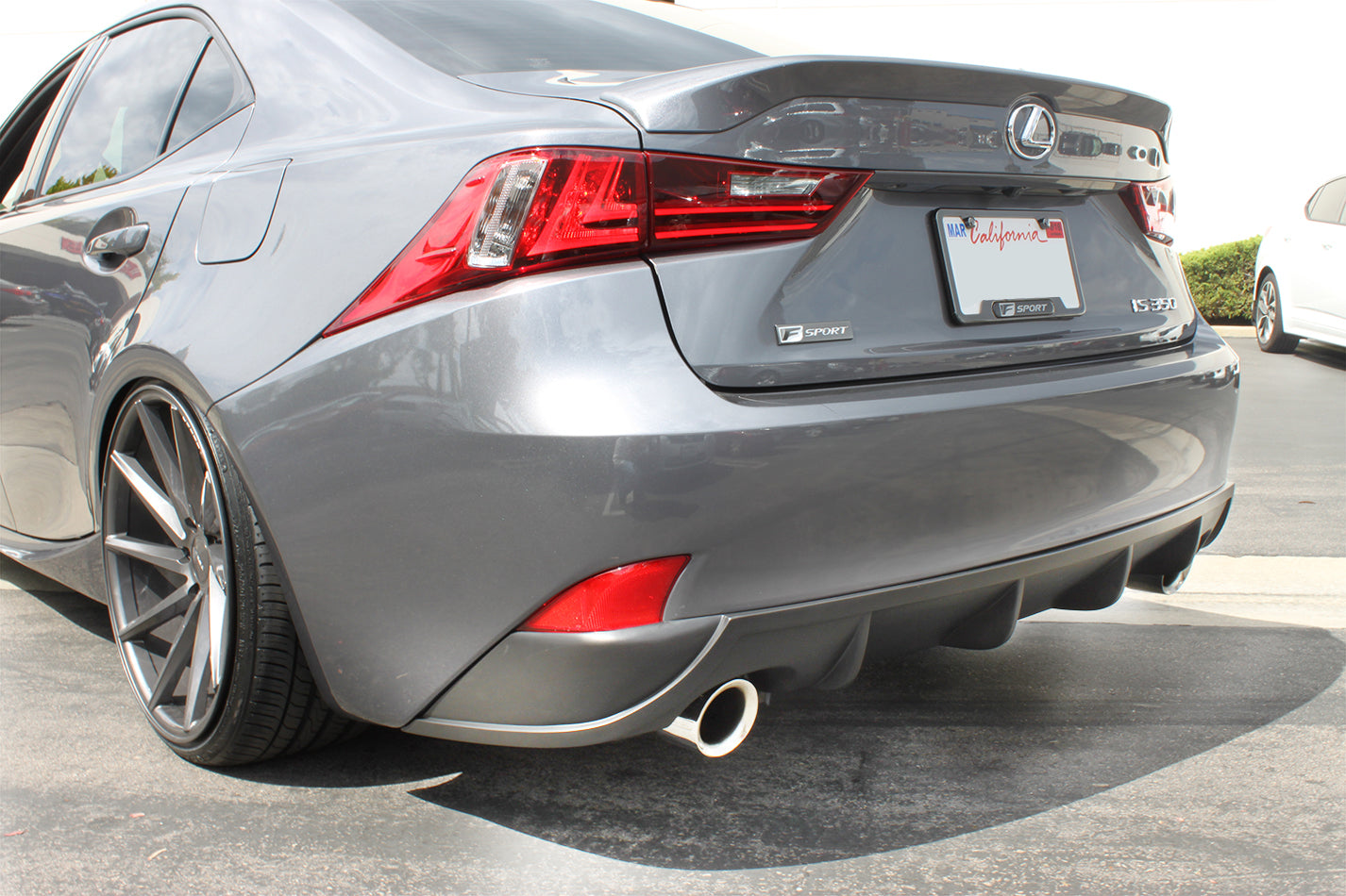 STILLEN Rear Bumper Valance Diffuser for 2014-2015 Lexus IS250, IS350 - Matte Black. STILLEN rear diffusers are constructed of durable polyurethane, and install without cutting, trimming or altering the vehicle in any way. Each diffuser comes with genuine 3M automotive trim foam tape pre-installed as well as adhesion promoter to make your installation quick and easy. Some applications include self-tapping screws to fully secure the diffuser.
