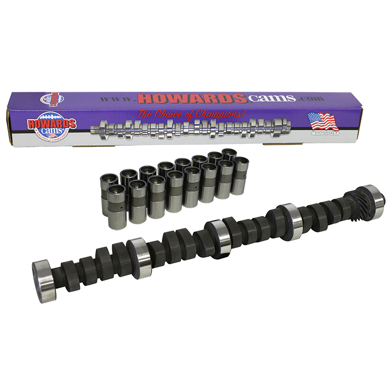 1963 - 1995 Ford 221-302 Mech Flat Tappet 3000 to 7200 Camshaft & Lifter Kit All Howards Cams use the highest-grade race quality cores available. All hydraulic and mechanical flat tappet camshafts are 100% Rockwell checked and Parkerized to ensure the highest quality control standards available anywhere. Howards Cams are manufactured on dedicated high precision CNC cam grinding machines. Most Howards Cams are packaged and shipped in our unique, hard, high impact plastic reusable cases. This ensures that the high quality camshaft that went into the case comes out in the same condition, when delivered, as when it was packed. Lift: .560 / .571, Duration @ .050: 250 / 256, Centerline: 104, Rough idle, Needs good induction system, Good oval track cam.