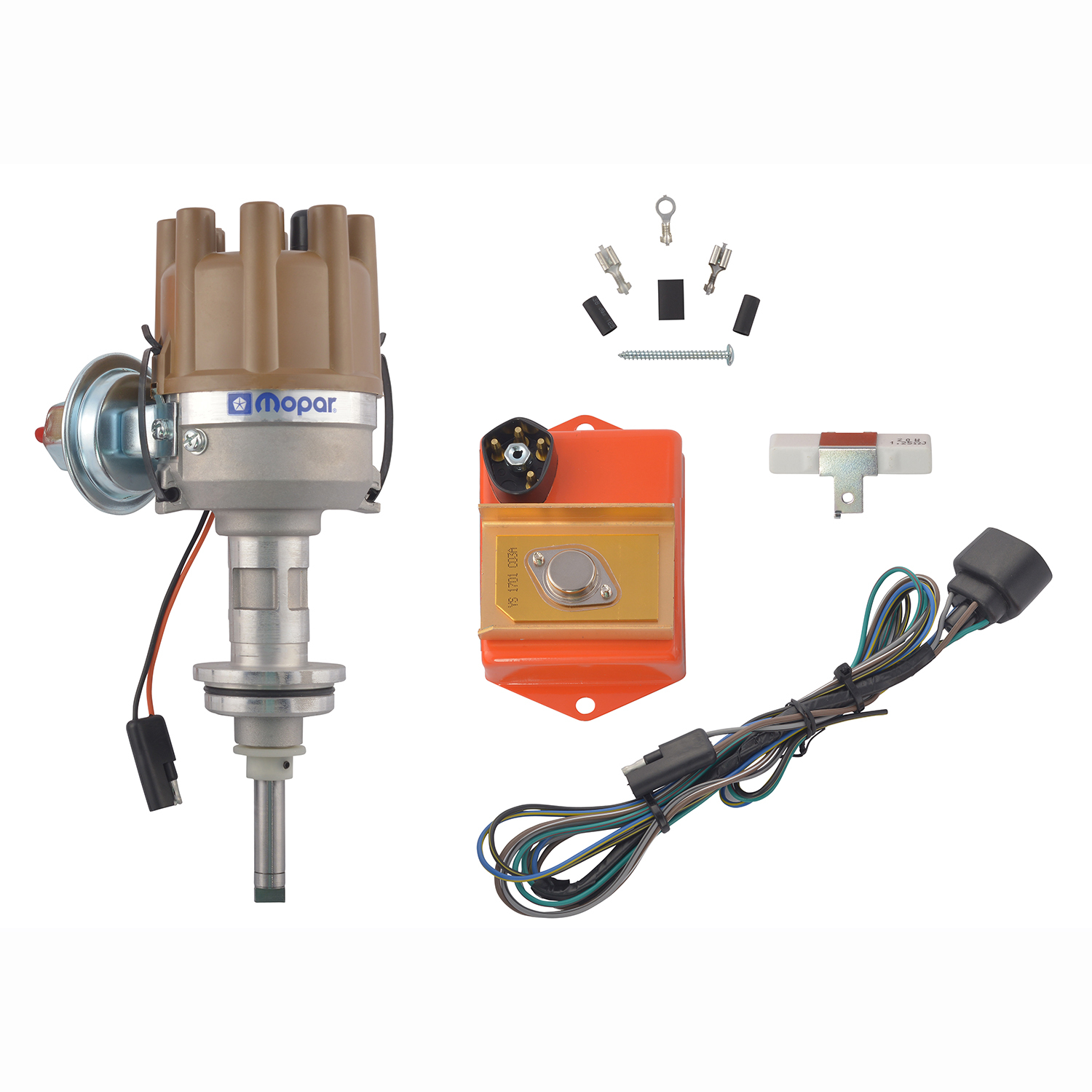 Made entirely of 100 percent new, not rebuilt components. Each high performance, factory set distributor, has a retro-style Mopar Emblem prominently displayed beneath the tan female socket type cap. Fits Chrysler 361-383-400 Big Block B and RB Engines. Sold as one kit.