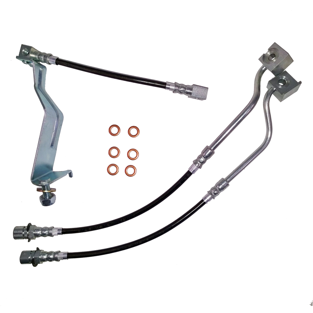Expansion of stock rubber hoses causes a spongy brake pedal feel and loss of initial braking force. Installation of our PTFE-lined stainless steel hose assemblies will give your car a firmer pedal, quicker braking response, and easier brake modulation. Every hose is tested to 3000 psi to guarantee a leak free hose assembly. Best of all these are made by J&M Products right here in the USA.