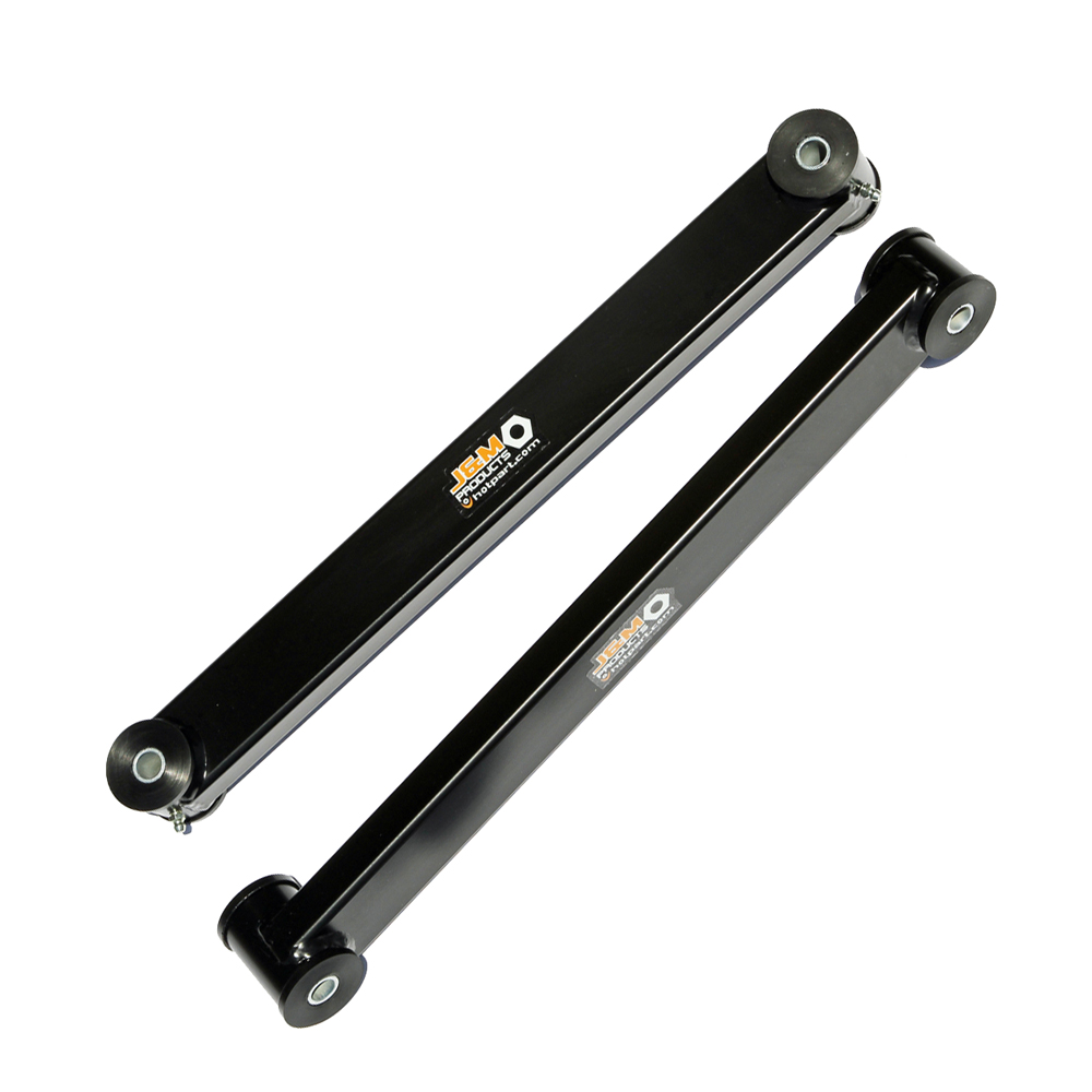 Made from 1x2 inch high strength 0.120 wall thickness these arms are designed to take the abuse from Street or Drag. Featured on these arms are our specially designed fluted and scalloped greasable elastomer synthetic bushings for a great long service life and a quiet ride. These J&M lower control arms boxed come standard in durable red or black powder coat and are 100 per cent manufactured San Luis Obispo CA USA. Installation: Easy one hour bolt-on installation that requires no drilling or welding and uses OEM hardware.