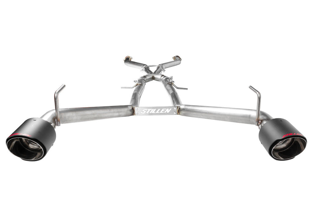To finish the exhaust system the customer has a choice of polished stainless, burnt stainless steel, or carbon fiber exhaust tips. Additionally the exhaust system is supported by a STILLEN branded cross-brace supporting and accentuating the exhaust system. We are extremely proud to offer this exhaust system and even more proud to continue our many decades of American manufacturing.