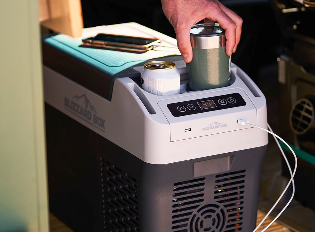Compared to traditional coolers, Blizzard Box keeps your food and beverages colder for longer without any ice, featuring a high-performance compressor, electronic thermostat, and foam-injected walls for added insulation to reach temperatures as low as 0 degree F.