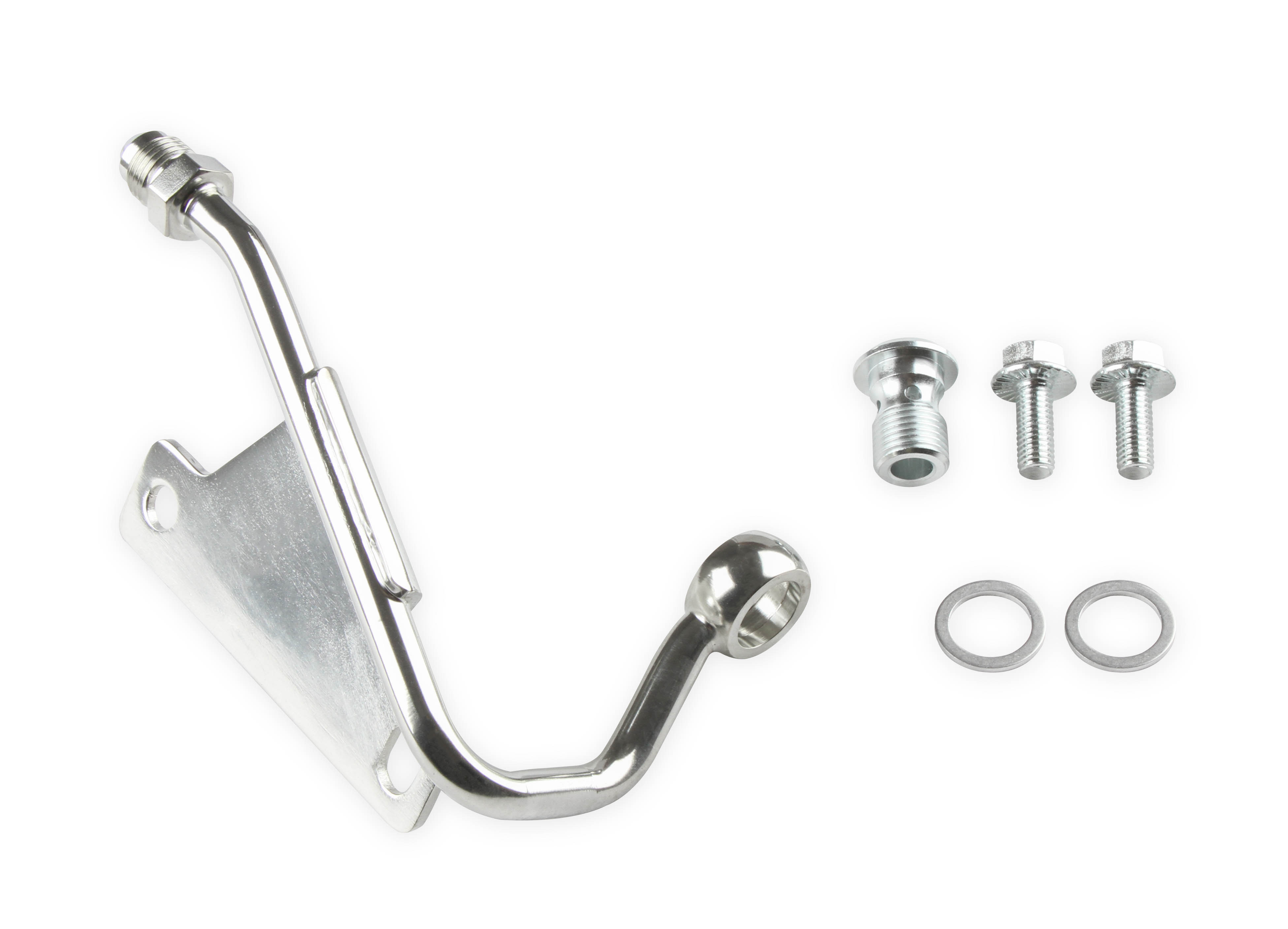 Power Steering Hardline for Type II power steering pumps. Steel w/ Zinc Plating For use with Low-Mount accessory drives.