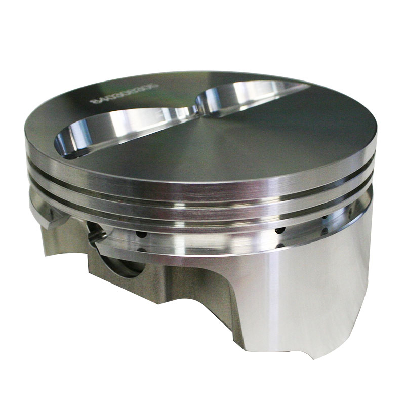 Pro Max Chevrolet 2618 Forged 23 Degree Flat Top -5.0cc Pistons The forging design produces a stronger piston for the ultimate in performance. All Howards HRC Racing Pistons are forged from 2618 billet bar stock and then heat treated and aged to a T61 condition (2618-T61). This material has less than 1% silicon particulate content. High silicon content pistons (forged from 4032 or MS75) will not stand up to the most extreme stress placed on many racing pistons. Simply stated, adding sand to the aluminum only makes it more brittle. Another advantage of 2618-T61 over the high silicon pistons is the ability to keep its shape under extreme pressure and high RPM's. "Skirt Shrinking" is not a problem with Howards HRC Racing Pistons. All HRC pistons are machined on the most modern CNC equipment in the industry. The design of the CNC turned skirts allows these pistons to work properly under intense heat and severe side loads without scuffing or splitting the cylinder walls. Dome pistons are designed with radiused domes, eliminating sharp edges and “hot spots”. The valve pockets are built to handle large cam profiles and oversized valves. Forced pin oilers, accumulator grooves and lock removal indents are standard. Sets include lightweight .150” wall, heat treated aircraft quality wrist pins. Double spirolox are standard.