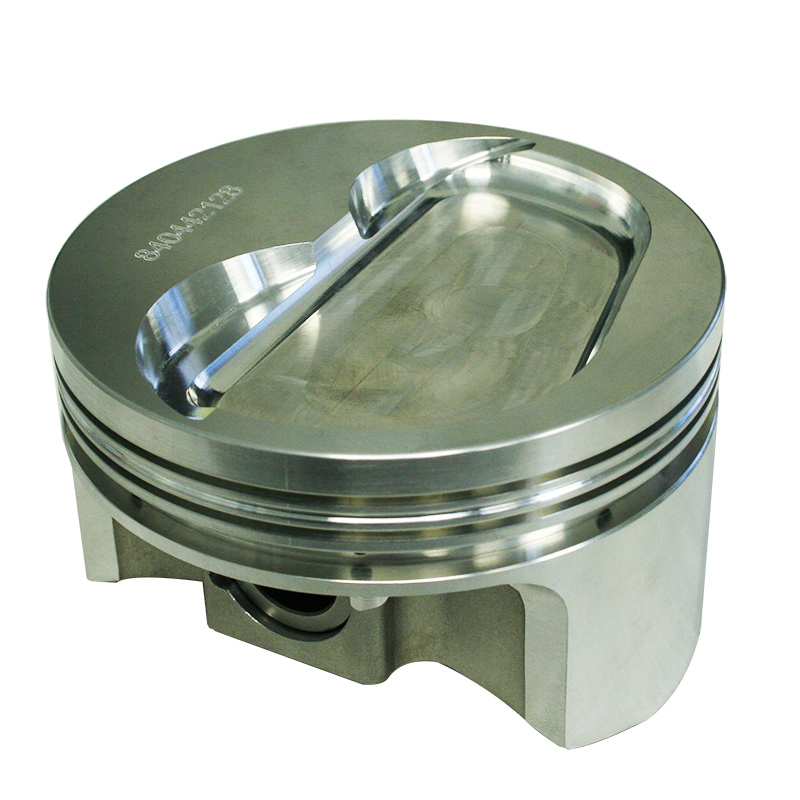 Pro Max Chevrolet 262-400 2618 Forged 23 Degree Inverted Dome -28.0cc Pistons The forging design produces a stronger piston for the ultimate in performance. All Howards HRC Racing Pistons are forged from 2618 billet bar stock and then heat treated and aged to a T61 condition (2618-T61). This material has less than 1% silicon particulate content. High silicon content pistons (forged from 4032 or MS75) will not stand up to the most extreme stress placed on many racing pistons. Simply stated, adding sand to the aluminum only makes it more brittle. Another advantage of 2618-T61 over the high silicon pistons is the ability to keep its shape under extreme pressure and high RPM's. "Skirt Shrinking" is not a problem with Howards HRC Racing Pistons. All HRC pistons are machined on the most modern CNC equipment in the industry. The design of the CNC turned skirts allows these pistons to work properly under intense heat and severe side loads without scuffing or splitting the cylinder walls. Dome pistons are designed with radiused domes, eliminating sharp edges and “hot spots”. The valve pockets are built to handle large cam profiles and oversized valves. Forced pin oilers, accumulator grooves and lock removal indents are standard. Sets include lightweight .150” wall, heat treated aircraft quality wrist pins. Double spirolox are standard.