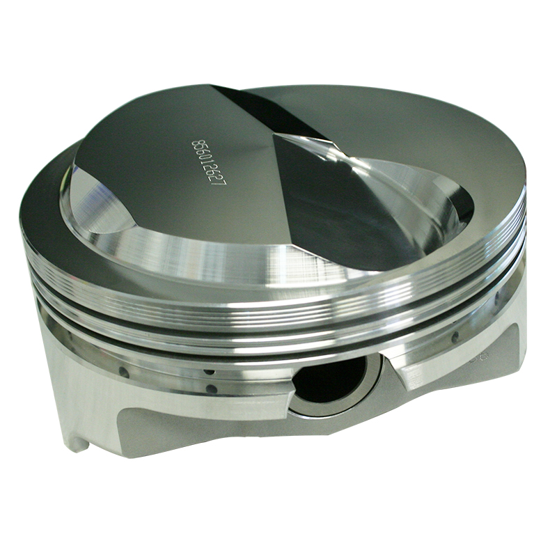 Pro Max Chev 396-502 2618 Forged 27.0cc Pistons The forging design produces a stronger piston for the ultimate in performance. All Howards HRC Racing Pistons are forged from 2618 billet bar stock and then heat treated and aged to a T61 condition (2618-T61). This material has less than 1% silicon particulate content. High silicon content pistons (forged from 4032 or MS75) will not stand up to the most extreme stress placed on many racing pistons. Simply stated, adding sand to the aluminum only makes it more brittle. Another advantage of 2618-T61 over the high silicon pistons is the ability to keep its shape under extreme pressure and high RPM's. "Skirt Shrinking" is not a problem with Howards HRC Racing Pistons. All HRC pistons are machined on the most modern CNC equipment in the industry. The design of the CNC turned skirts allows these pistons to work properly under intense heat and severe side loads without scuffing or splitting the cylinder walls. Dome pistons are designed with radiused domes, eliminating sharp edges and “hot spots”. The valve pockets are built to handle large cam profiles and oversized valves. Forced pin oilers, accumulator grooves and lock removal indents are standard. Sets include lightweight .150” wall, heat treated aircraft quality wrist pins. Double spirolox are standard.