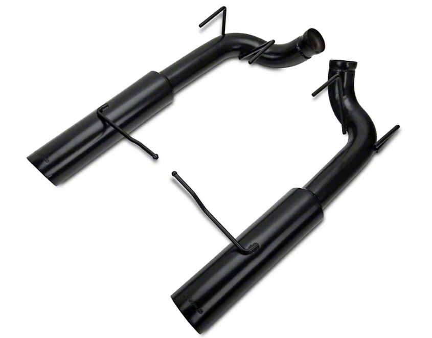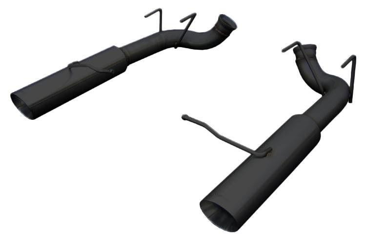 Adds a much better sound and look to OEM exhaust. 2.5 inch mandrel bent mid-pipes and mufflers also free up about 8-10 hp. M-80 mufflers are placed under the car in the traditional place for that classic sound and Axle-back Pype Bombs with 4 inch resonated stainless tips look great out the back. All stainless construction.
