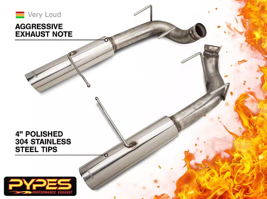 Pype Bomb Series Axle Back Exhaust System 11-14 Mustang V6 Split Rear Dual Exit 4 in Polished Tips Hardware Not Incl Polished 304 Stainless Steel Pypes Exhaust