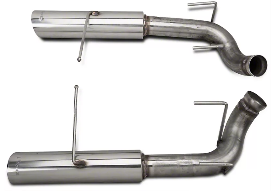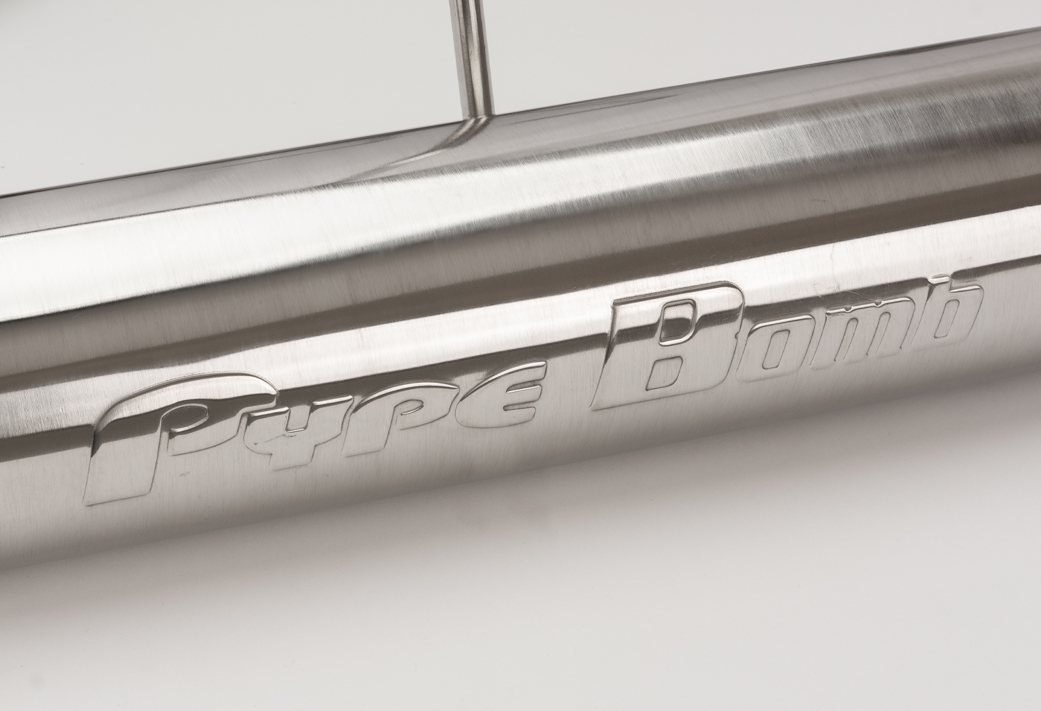 Adds a much better sound and look to OEM exhaust. 2.5 inch mandrel bent mid-pipes and mufflers also free up about 8-10 hp. M-80 mufflers are placed under the car in the traditional place for that classic sound and Axle-back Pype Bombs with 4 inch resonated stainless tips look great out the back. All stainless construction.