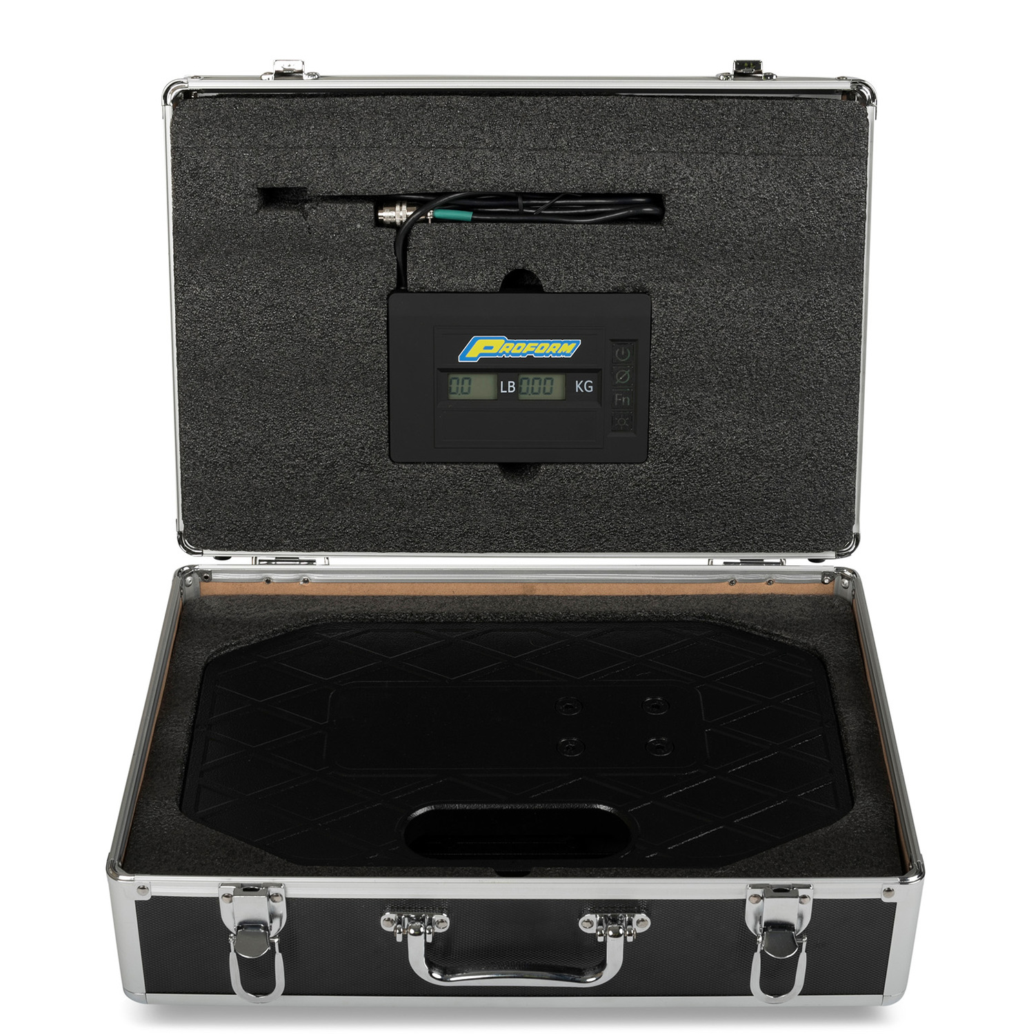 Do not be that guy that runs out of gas on the last lap and goes from greatness to pushing their car across the line. Most race cars do not have fuel gauges, so gas quantity, weight, and consumption leads to a carefully managed mathematical equation that can pay off big time in the end. Part of that winning strategy starts with a gas can scale and knowing how much gas is going into the vehicle. The Proform gas can scale has a 400 lb capacity, with a resolution of 0.1 lbs. The system is comprised of a single wired scale pad from the PROFORM reliable 5000 lb wired vehicle scale that has been redesigned for reduced capacity, and increased accuracy. The gas can scale system also features the new 3rd generation LCD display with backlit screen for night and day use. There is more, the system comes in a hard shell foam lined carrying case. AA batteries included. Sold individually.
