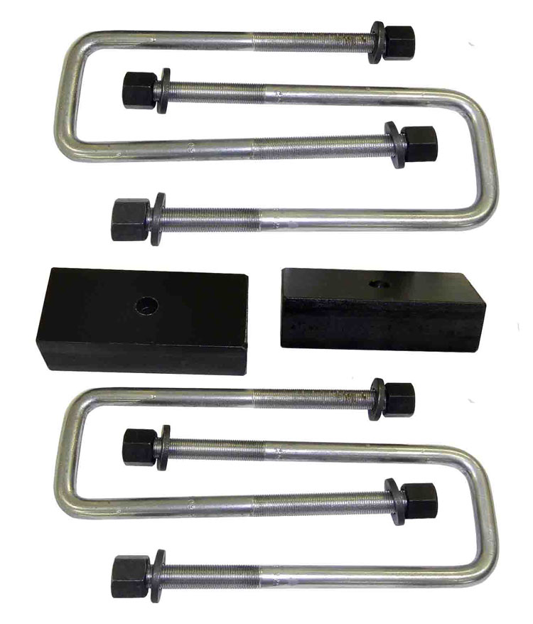 SuspensionMaxx Heavy Duty Block and U-Bolt Rear Leaf Spring Leveling Kits Are The Perfect Solution For Lifting Or Leveling The Rear Of Trucks Or SUV's Carrying Heavy Loads Including Campers. Such Loads Can Cause Rear Suspension To Compress and Sag-Thereby Reducing Rear Ride Height. Our Block and U-Bolt Kits Simply Fit Between Rear Leaf Springs and Axle To Compensate For Suspension Compression and Restore Rear Ride Height.