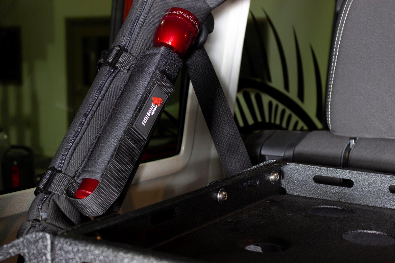 Our Roll Bar Flashlight Holder allows the flexibility to install you flashlight within arms reach, while offering the security our mounted brackets provide. Move it to the front for self-defense while in the city, then switch it to the rear for an extra light source back at your camp site.