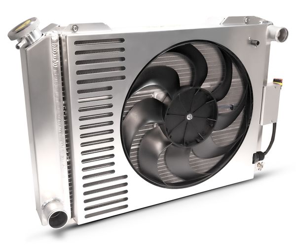 Every Proform Slim-Fit Radiator includes a shroud, electric fan with adjustable thermostat, wiring harness, and radiator cap.