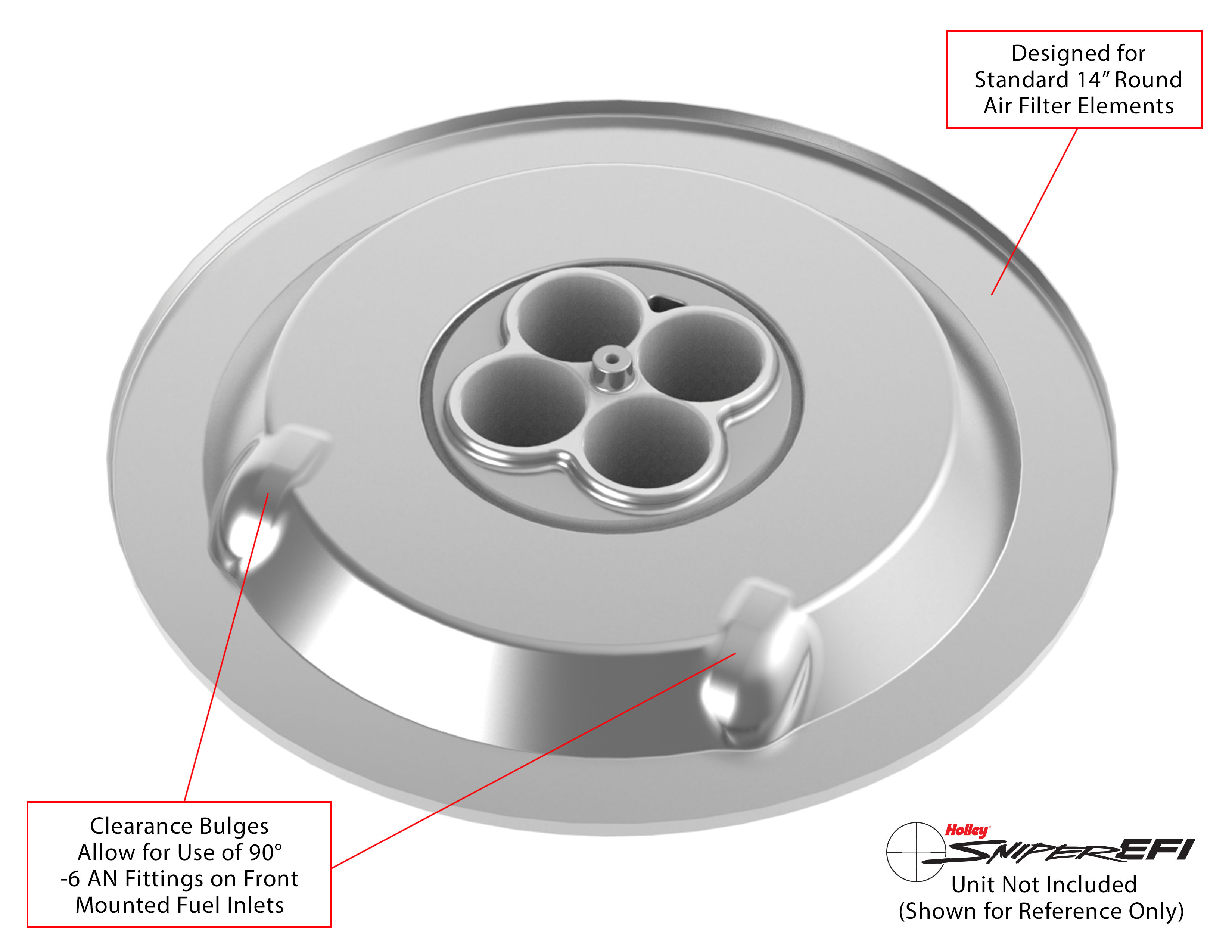 - 14” diameter, stamped steel construction with embossed Holley Sniper logo