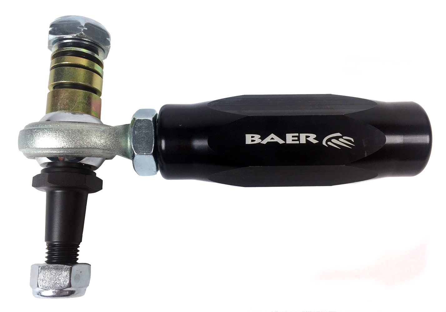 The BAER Trackers feature a 6061 T-6 fully machined sleeve that is anodized black, that is mated to a Teflon lined heim joint and machined pin which has correct taper so spindles are not required to be drilled/modified. These are vehicle specific pieces that help correct bumpsteer issues do to modified suspensions and/or poor OE design. Best of all these are made in the USA!