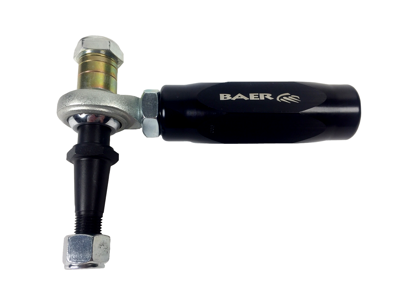 The BAER Trackers feature a 6061 T-6 fully machined sleeve that is anodized black, that is mated to a Teflon lined heim joint and machined pin which has correct taper so spindles are not required to be drilled/modified. These are vehicle specific pieces that help correct bumpsteer issues do to modified suspensions and/or poor OE design. Best of all these are made in the USA!