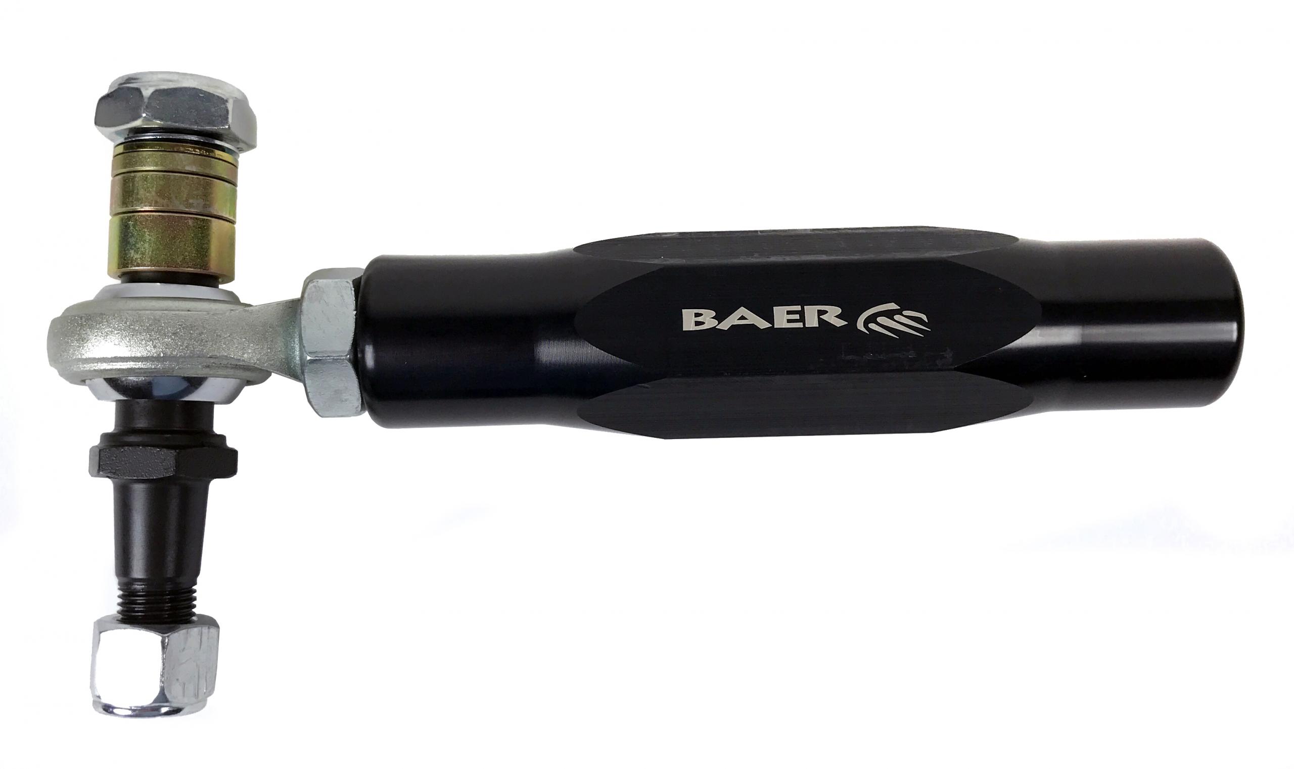 The BAER Trackers feature a 6061 T-6 fully machined sleeve that is anodized black, that is mated to a Teflon lined heim joint and machined pin which has correct taper so spindles are not required to be drilled/modified. These are vehicle specific pieces that help correct bumpsteer issues do to modified suspensions and/or poor OE design. Best of all these are made in the USA!