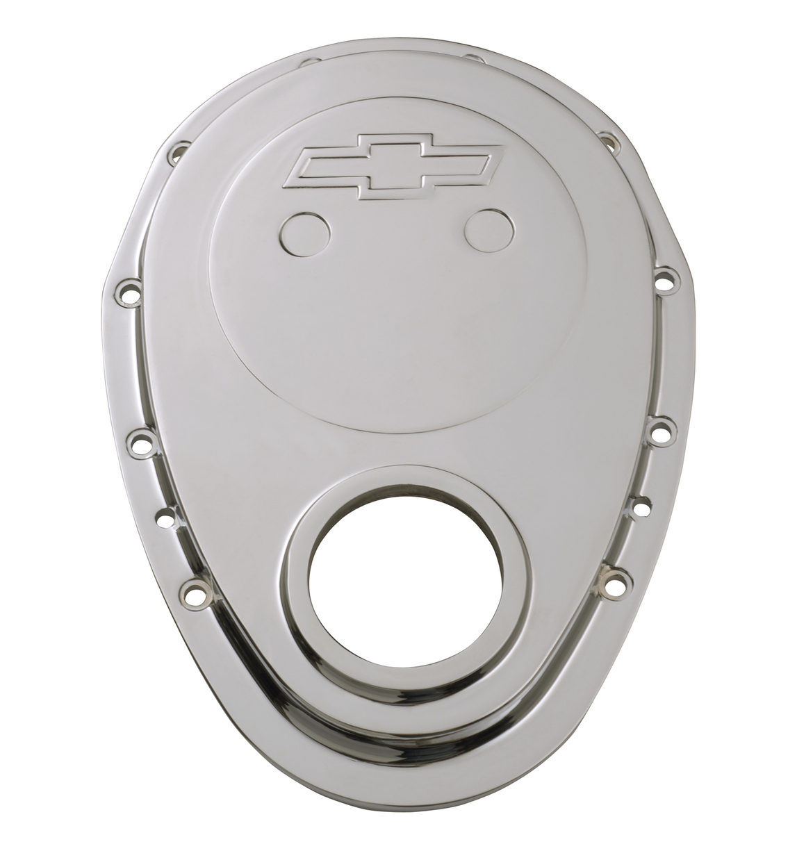 This Premium Die-Cast Aluminum Timing Chain Cover is Manufactured from High-Quality Aluminum material. Features a great looking Polished or Chrome Plated Finish. Designed to fit 1969 to 1991 Small Block Chevy engines. Front crankshaft oil seal is included. This is an officially licensed Chevrolet Performance Parts product. Sold individually.