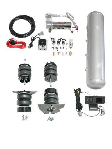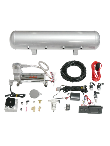 • Includes high performance VIAIR 444C compressor in chrome finish, 1/4 inch air line, all necessary push-to-connect fittings, power wire, pressure switch and 4 gallon tank.