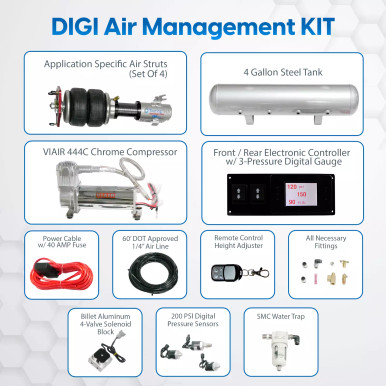 • DIGI Air Management system provides a complete kit with everything needed to complete the install and operate your TOPair Air Struts.