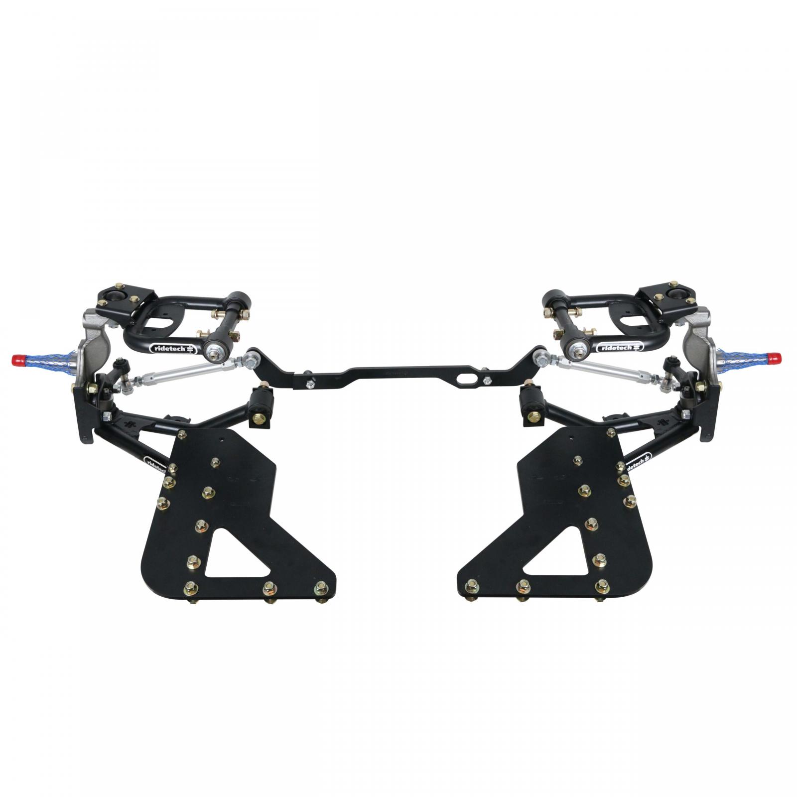 Truturn System For 1962-1967 Chevy Ii Nova For Use W/ Coil-Overs Or Shockwaves Sold Separately Upper And Lower Arms Delrin Bushings Ball Joints Frame Braces Tall/Drop Spindles Steering LinkagePowder Coated Satin Black Ridetech