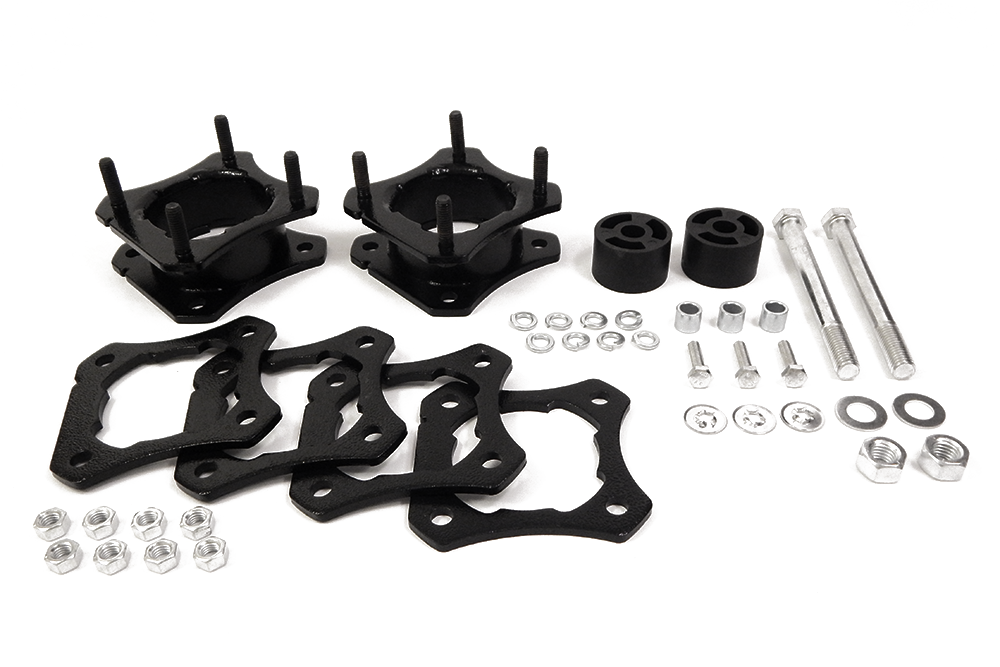 This 2007-2020 Toyota Tundra leveling kit provides added .25-inch shims to obtain the ride height you wish to achieve. Tired of the long installation process? Increase your energy and truck's appearance with our bolt-on installation level kit, featuring a unique design that allows the install process without strut or spring disassembly, drilling, or cutting - all of this for less than half the price of the competition!