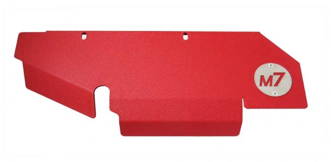 Made from 0.09in [2.2mm] heavy gauge aluminum material and powder coated in same beautiful heat resistant matte black finish as all the M7 under hood parts are.
