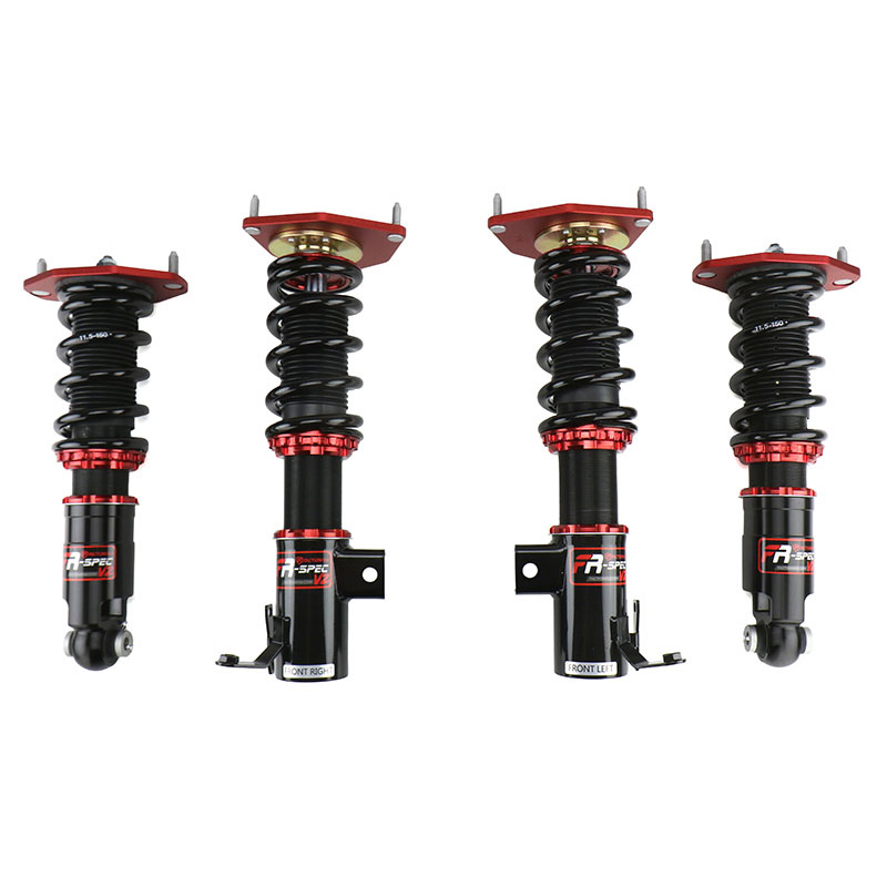 These V2 FR-Specs are designed from the ground up for racing. They have higher spring rates and valving to suit performance track driving at no cost. The FR-Spec line features a solid aluminum, pillow-ball camber plate that significantly reduces suspension deflection while giving full alignment control.