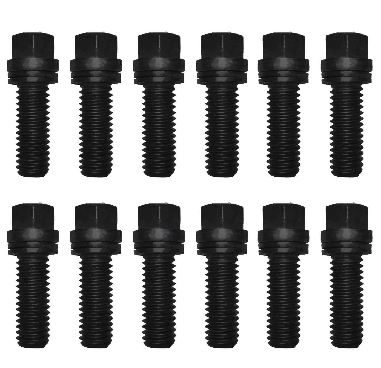 Each PROFORM Grade 8 Header Bolt is permanently assembled with a pair of special washers. When the bolt is torqued to 28+ ft-lbs, the washers super-hardened external teeth bite into and grip the bottom of the bolt head and the top surface of the header. After being self-locked in this manner, any bolt-loosening rotation is blocked by a wedge-locking action created by the washers interfacing, matching cams. Its an uphill climb: vibration that might ordinarily loosen the bolt actually increases the wedge-locking tension, securing the bolt even more. Because this simple wedge-locking method uses tension instead of friction, contact with oil actually facilitates the wedge effect. When changing headers, PROFORM Header Bolts can be untightened with a normal wrench, lubricated, and reused. Sold as a set.