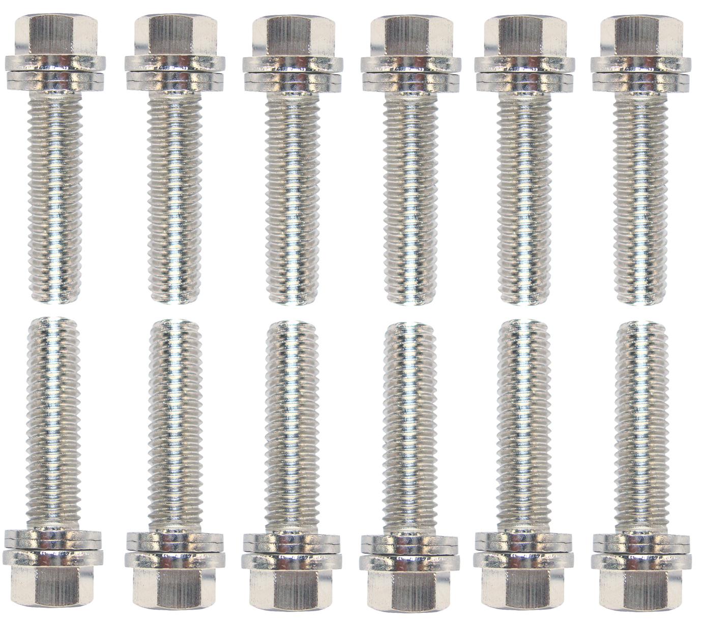 Each PROFORM Grade 8 Header Bolt is permanently assembled with a pair of special washers. When the bolt is torqued to 28+ ft-lbs, the washers super-hardened external teeth bite into and grip the bottom of the bolt head and the top surface of the header. After being self-locked in this manner, any bolt-loosening rotation is blocked by a wedge-locking action created by the washers interfacing, matching cams. Its an uphill climb: vibration that might ordinarily loosen the bolt actually increases the wedge-locking tension, securing the bolt even more. Because this simple wedge-locking method uses tension instead of friction, contact with oil actually facilitates the wedge effect. When changing headers, PROFORM Header Bolts can be untightened with a normal wrench, lubricated, and reused. Sold as a set.