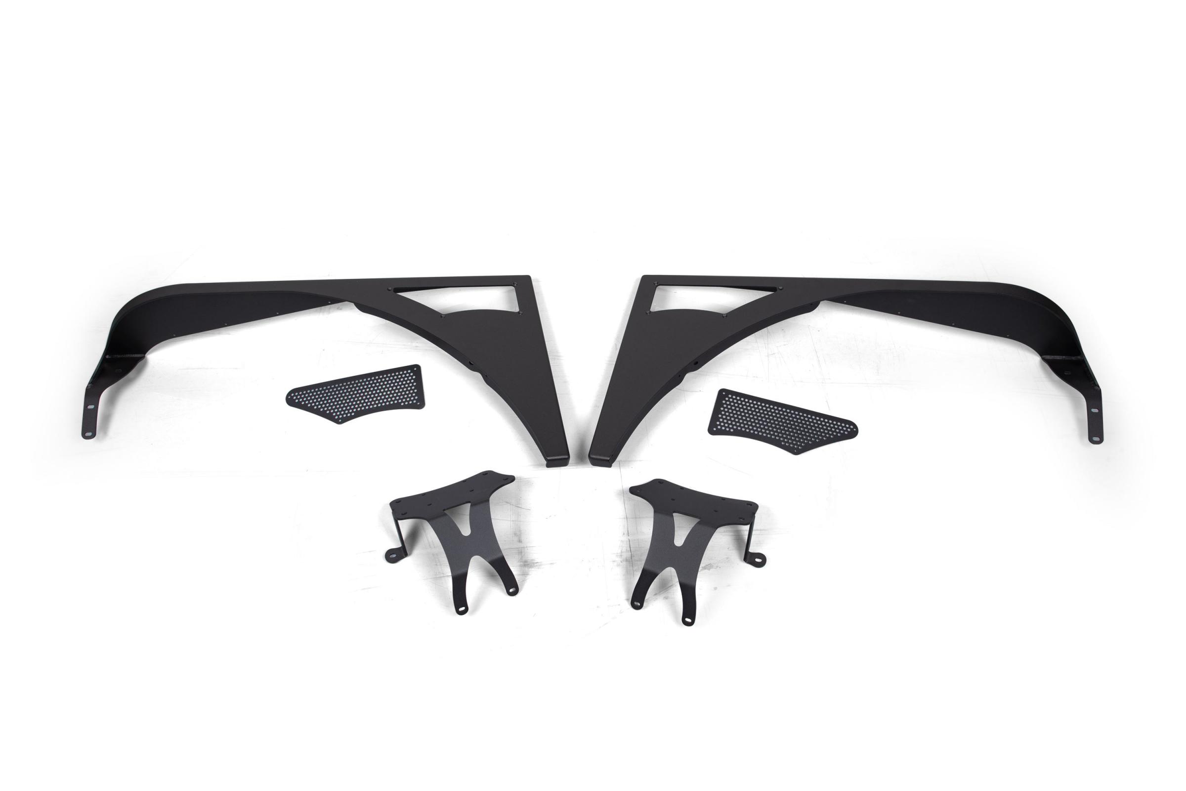 We included the battery relocation trays that fit with stock and aftermarket batteries. The inner fender liners (included) are made of aluminum and allow for plenty of heat to escape. Simply cut your factory hood or use an aftermarket highline hood!