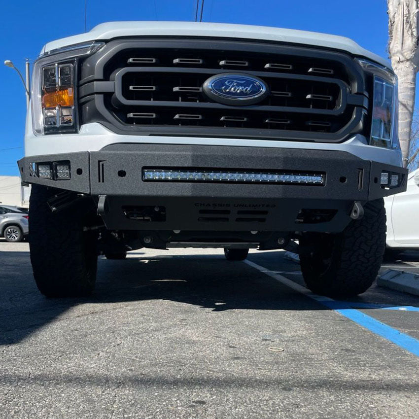 The Chassis Unlimited Octane Series Light bar-style front bumper ships to your door ready to install on your truck, complete with our 3-Stage texture black powder coat.