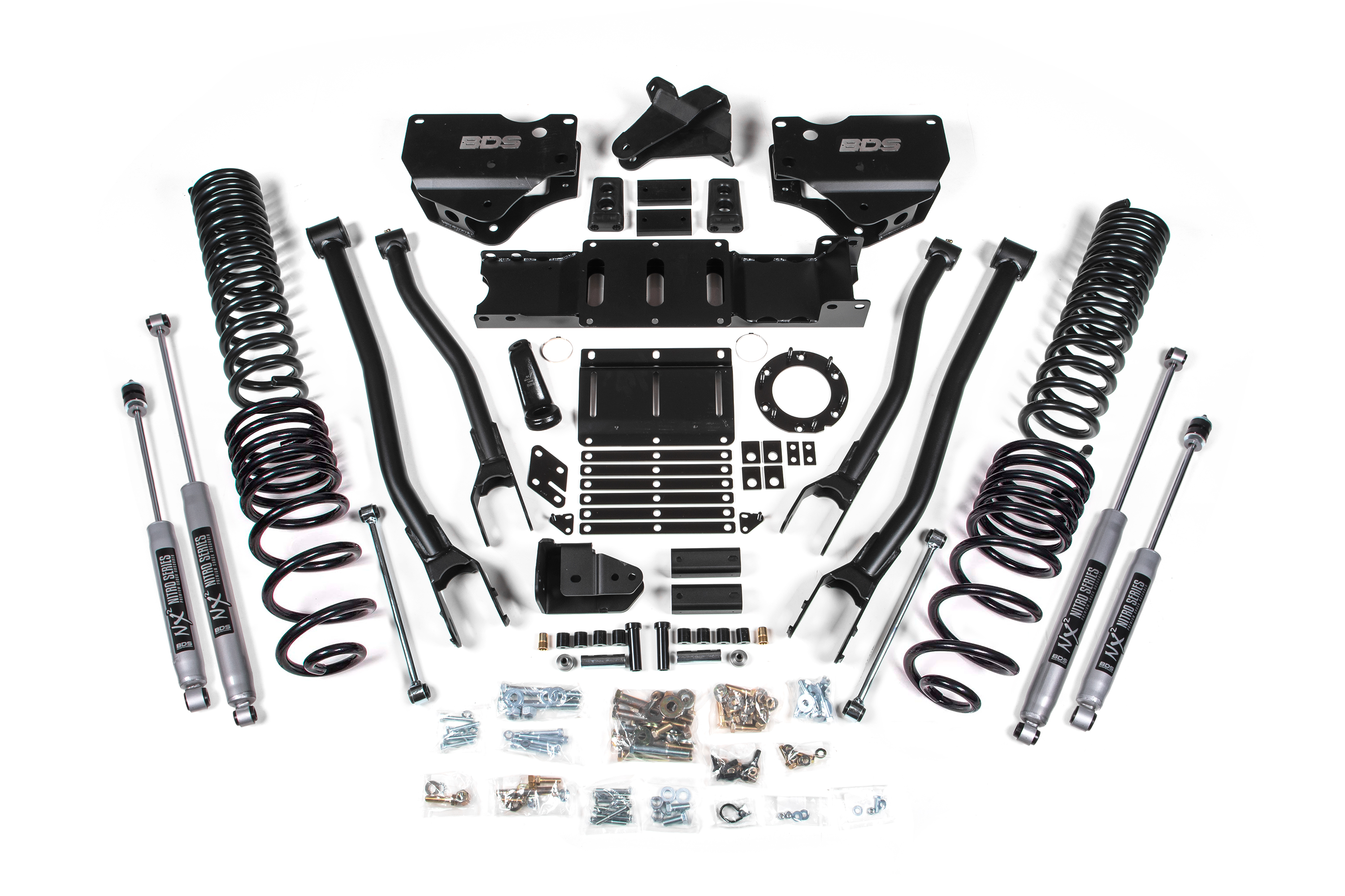 Built to outperform, BDS Suspension engineered a 4-inch lift kit with 4-Link conversion for your 2019-2024 RAM 2500 diesel powered truck that will surely impress. Designed to improve stance, performance, and capability, this kit includes everything necessary to set your truck up right with clearance for up to 35 inch Tires.