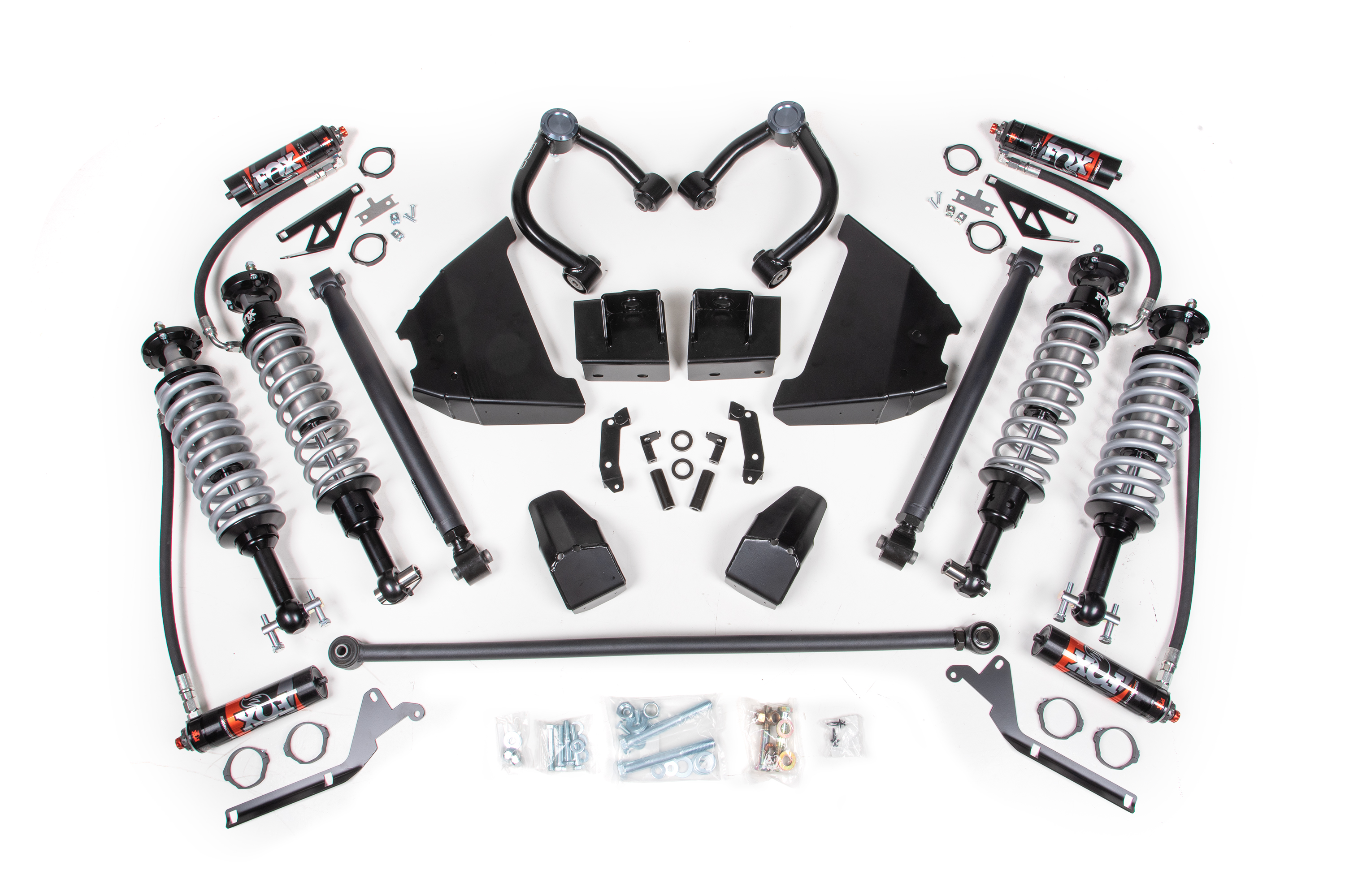 - Includes one FOX88406447, Kit: PVD, KOH Edition: 21-OnN Ford Bronco, 4 Door, w/UCA, Front Coilover, 2.5 Truck Fox Performance Elite Series, R/R, Base 4 inch Lift, Sasquatch 3 inch Lift, Dual Speed Compression Adjust