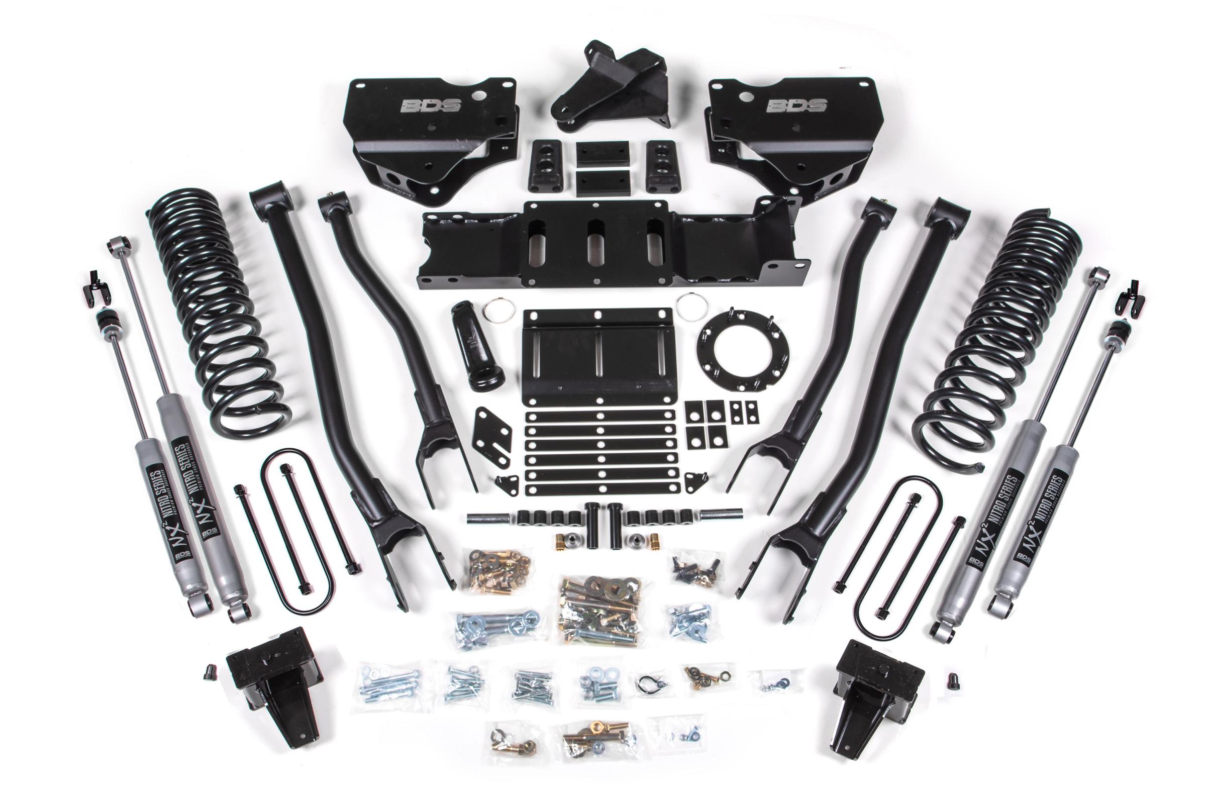 Raise your RAM 3500 gas powered truck to the next heights with this 5.5-inch lift kit with 4-Link conversion from BDS Suspension. Designed to improve stance, performance, and capability, this kit includes everything necessary to set your truck up right with clearance for up to 37" tires.