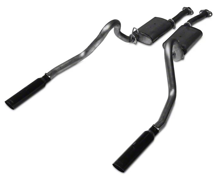 These systems can be installed at home without any special tools. Our easy to install, late model systems are designed to deliver that extra punch you're looking for and will make sure that you get noticed. This version Includes: 2.5 inch mandrel bent, catted street legal X crossover, mufflers, flow tubes, tails and hardware. 3 inch stainless slash-cut tips exit out the back of the rear bumper.
