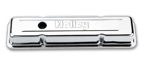Holley Embossed Valve Cover - SBC - Stamped Steel - Chrome