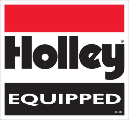 The Original Holley Equipped Logo Decal, Red, Black & White.
