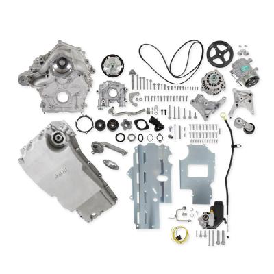 Fits Ford 7.3L Godzilla - Includes Holley Timing Cover/Coolant Manifold, SD7 A/C Compressor, Alternator, P/S Pump, Tensioner, Water Pump, Belt & Pulleys, Oil Pump, and Oil Pan