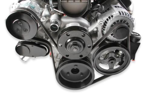 LS Engine Drive includes SD7 A/C Compressor, Alternator, P/S Pump, Tensioner, SFI certified damper w/hard anodized billet crank pulley, Belt, & Pulleys