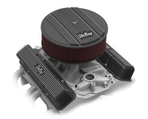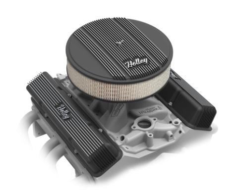 Holley Valve Covers - Vintage Series - Finned - SBC - Satin Black Machined