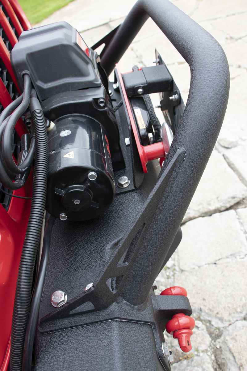 - Accepts a winch and includes fairlead mount