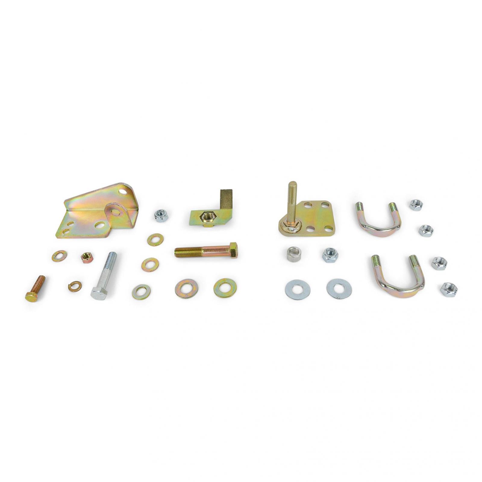 This is a simple bolt on 3/16s thick, gold zinc plated, double sheer bracket. It includes Grade 8 Hardware to properly clamp our new CNC laser cut and bent bracket to your factory axle mount.